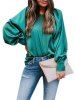 Lantern Sleeve Satin Solid Blouse