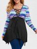 Handkerchief Lace Up Tie Dye Plus Size Top