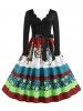 Scalloped Belted Plaid Snowman Christmas Tree Plus Size Dress