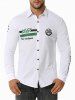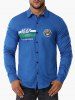 Button Up Letter Embroidered Graphic Print Shirt