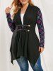 Plus Size Hanky Draped Plaid Collarless Knit Cardigan