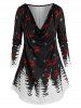 Plus Size Christmas Draped Elk Snowflake Curved Hem Tee