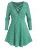 Plus Size Lattice Wide Rib Skirted Curved Hem Tunic Sweater