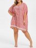 Pompom Trim Plus Size Slit Cover Up Dress