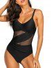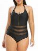 Plus Size Mesh Insert Halter One piece Swimsuit