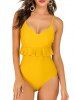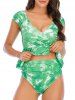 Tie Dye Peplum Ruched Surplice Tankini Swimwear