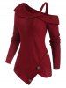 Ribbed Buttoned Open Shoulder Asymmetrical Knitwear