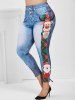 Christmas 3D Print Cartoon Elk Plaid Santa Claus Plus Size Jeggings