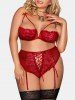 Plus Size Lace Peek A Boo Underwire Gartered Bra Set
