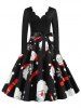 Christmas Santa Claus Long Sleeve Belted Retro Dress