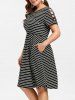 Criss Cross Sleeve Plus Size Striped A Line Dress