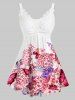 Plus Size Floral Print Lace Insert Sweetheart Neck Tank Top