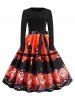 Belted Cat Pumpkin Print Long Sleeve Halloween Dress