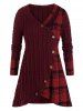 Plus Size Cable Knit Plaid Tulip Hem Cutout Tunic Sweater