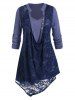 Plus Size Faux Two Piece Button Lace Blouse