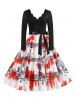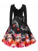 Plus Size Christmas Printed Scalloped Flare Dress