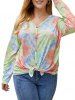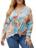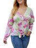 Plus Size Drop Shoulder Button Up Tie Dye T Shirt
