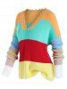 Plus Size Color Blocking Drop Shoulder Frayed Sweater