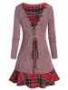 Plaid Panel Back Lace Up Skirted Knitwear