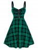 Plus Size Plaid Print Buckle Zipper Flare Dress