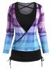 Plaid Cinched Side Criss Cross Surplice Top Set