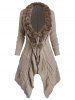 Faux Fur Collar Pocket Cable Knit Tie Front Cardigan