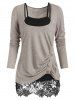 Ruched Square Collar Tee and Lace Hem Tank Top