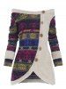 Faux Fur Insert Tribal Pattern Mock Button Sweater