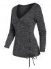 Plaid Print Lace up Mock Button Asymmetrical T shirt
