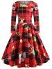 Plus Size Christmas Santa Claus Tree Print Pin Up Dress