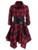 Plaid Belted Roll Tab Sleeve Handkerchief Dress