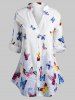 Plus Size Butterfly Print Roll Up Sleeve Blouse