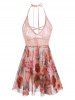 Plus Size Halter Lace Insert Backless Floral Babydoll Set
