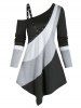 Colorblock Cold Shoulder Grommet Asymmetrical T Shirt