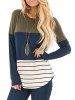 Colorblock Striped Lace Panel Long Sleeve Top