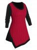 Plus Size Cable Knit Two Tone Asymmetrical Slit Sweater