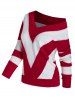 Plus Size Two Tone Bicolor Fuzzy Drop Shoulder Sweater