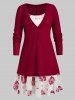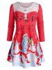 Plus Size Christmas Claus Musical Notes Lace Panel Long Sleeve Tee