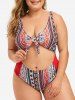 Plus Size Tribal Print Front Knot Monokini Swimsuit