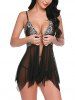 Lace Panel Mesh Handkerchief Babydoll with G string