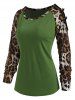 Leopard Panel Raglan Sleeve Cold Shoulder T Shirt