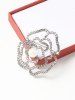 Faux Pearl Rhinestone Hollow Flower Brooch