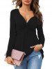Houndstooth Plaid Panel Half Button Ruched T Shirt