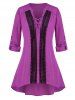 Plus Size Lace up Crochet Panel Roll Tab Sleeve Tunic Blouse