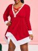 Plus Size Christmas Velvet Lattice Handkerchief Long Sleeve Dress