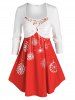 Plus Size Christmas Snowflake Criss Cross Ruched Flared Dress