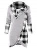 Tartan Panel Long Sleeve Asymmetrical T shirt