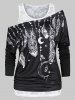 Feather Print Ruched T Shirt with Solid Tank Top