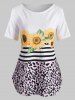 Sunflower Striped Leopard Cold Shoulder Top