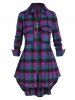 Plus Size Plaid Flap Pocket Zip Curved Hem Blouse